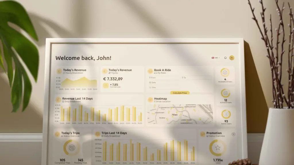 Our deliverables included UX and UI design for all app interfaces, ride creation flows, admin dashboards, data views, and interactive components, providing a complete design system ready for development and future feature expansion.